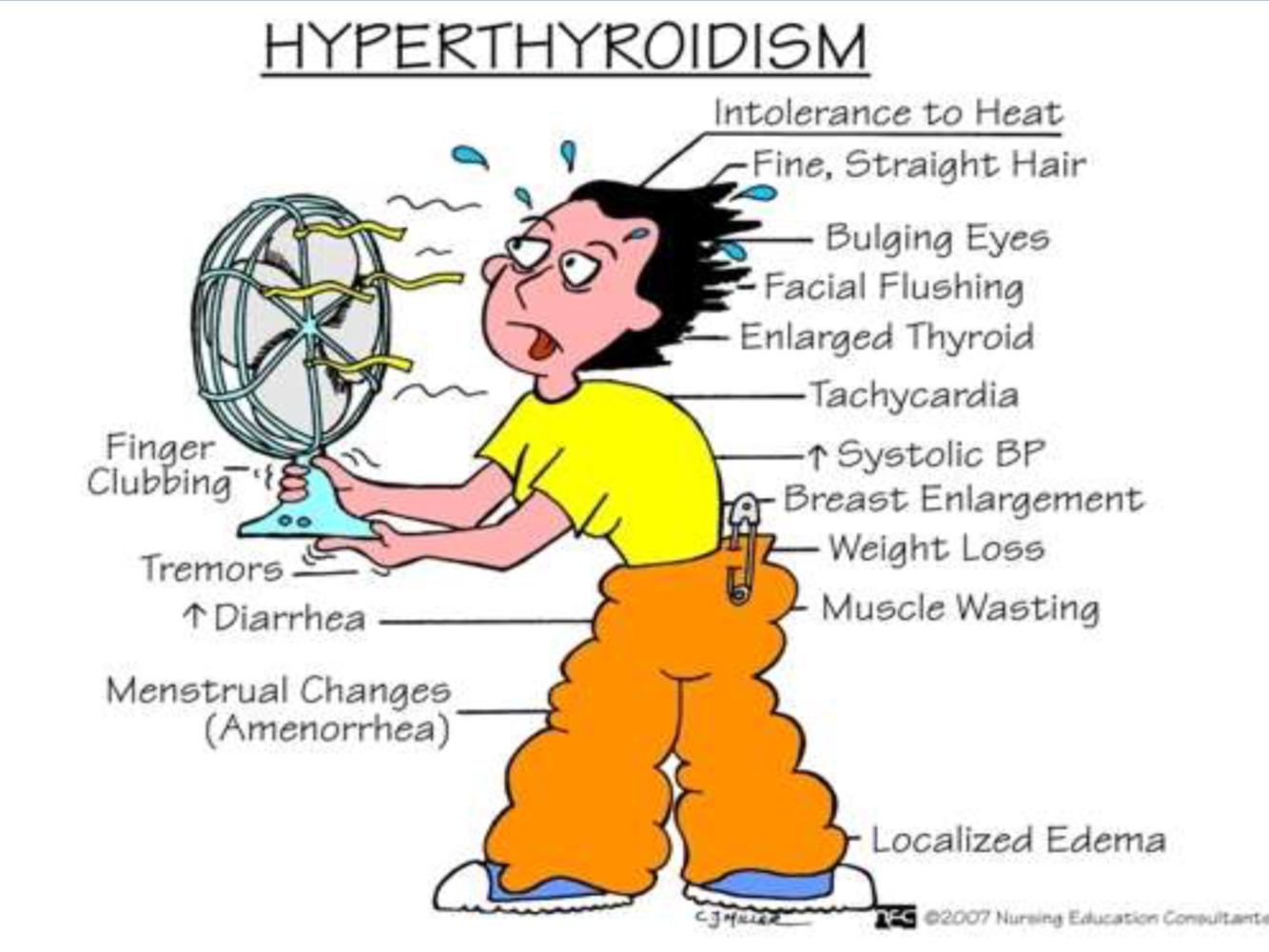 List 4 signs of hyperthyroidism