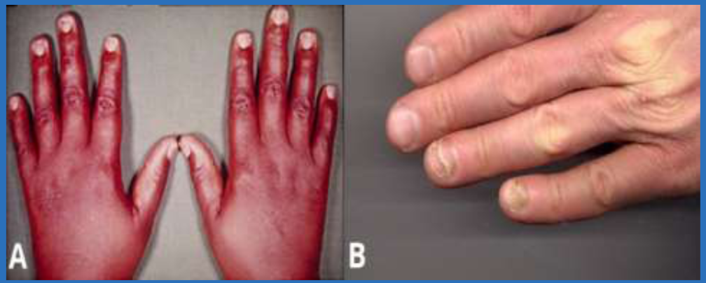 Exaggerated typical signs and symptoms, fever, jaundice, changes in neurologic function