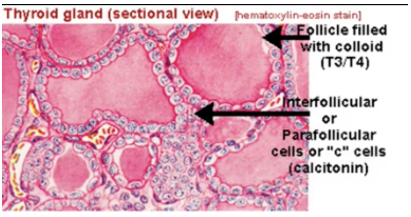 What is the cellular level arrangement of the thyroid?