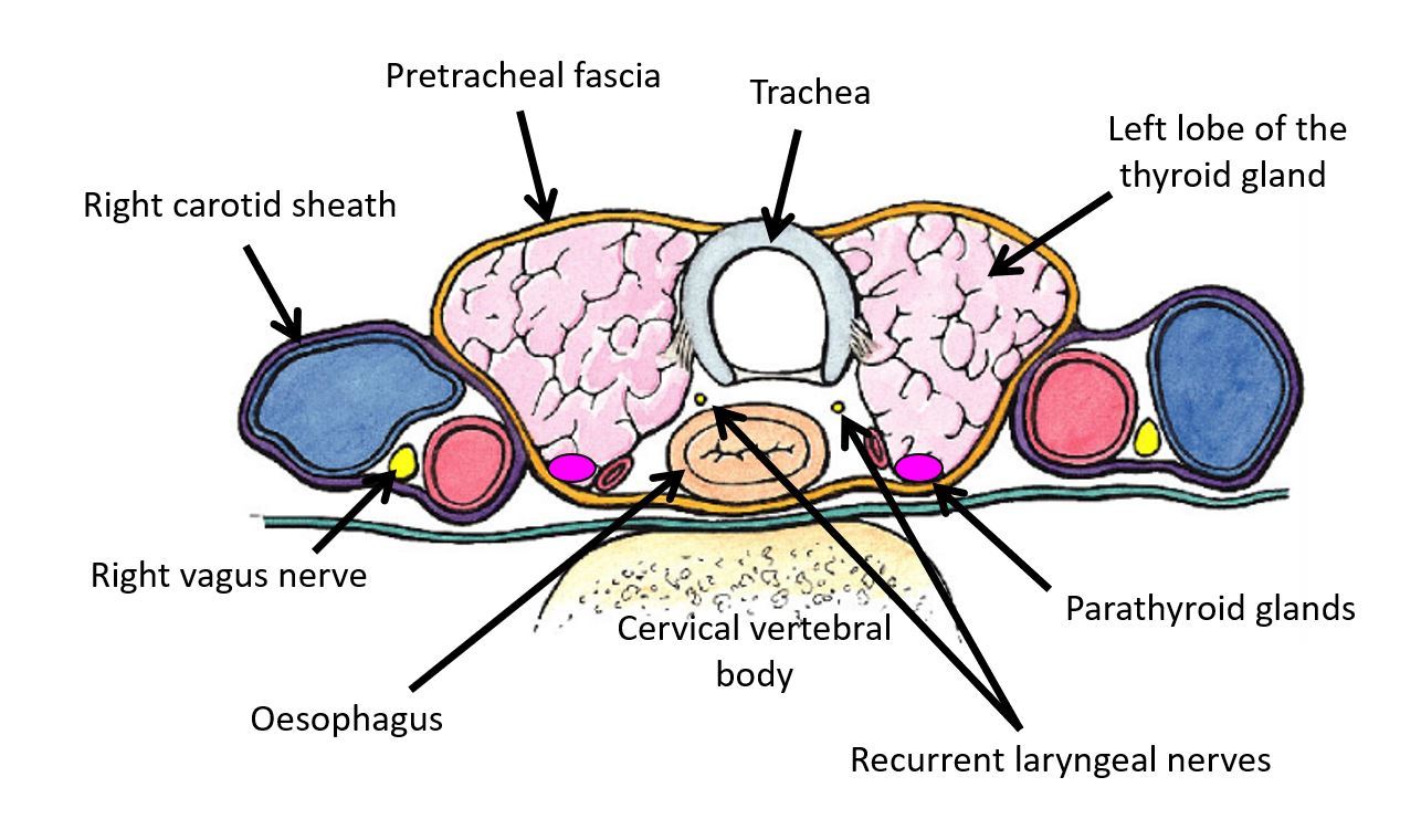 B - Left lobe of thyroid gland