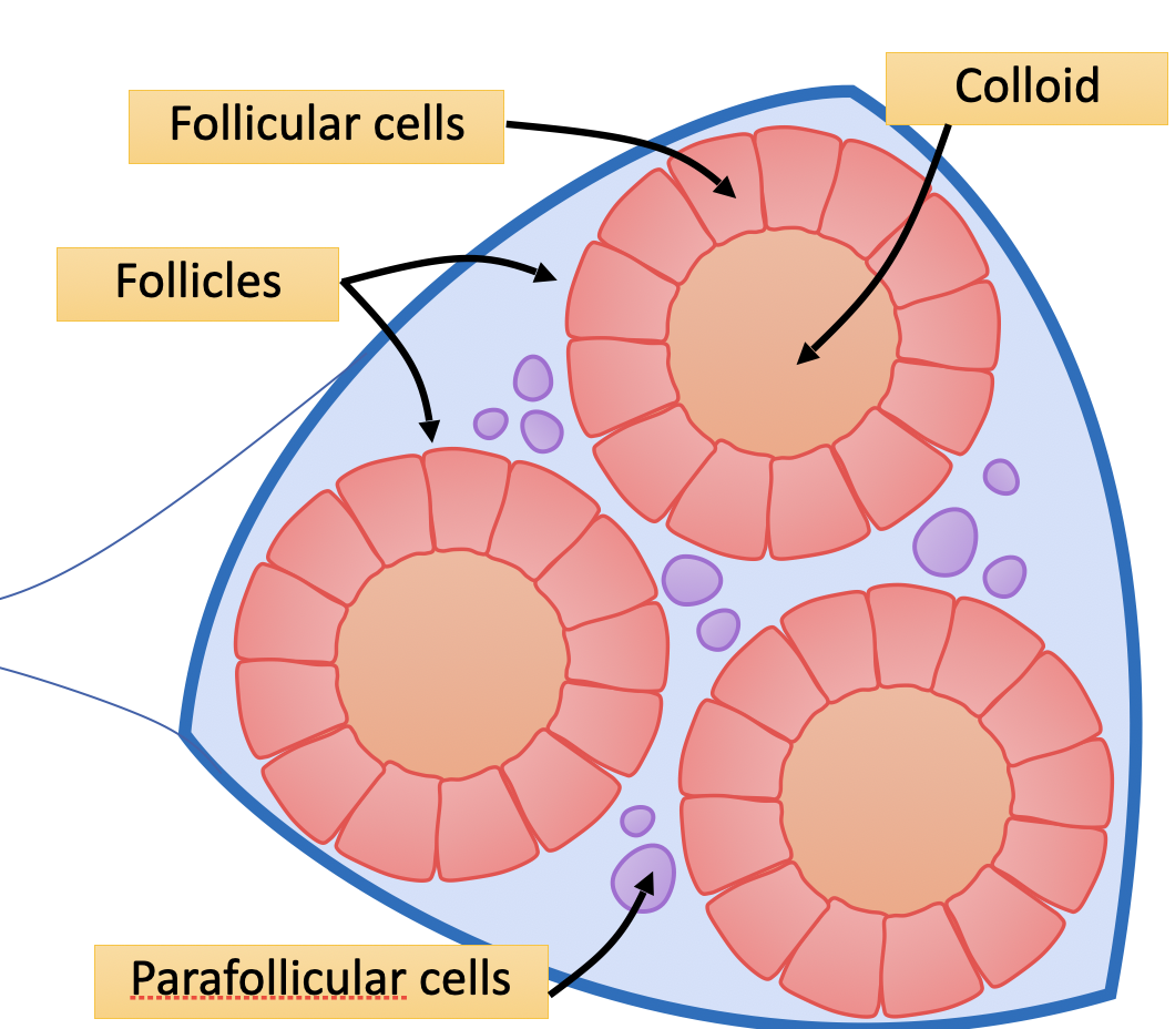 Secreted into the colloid