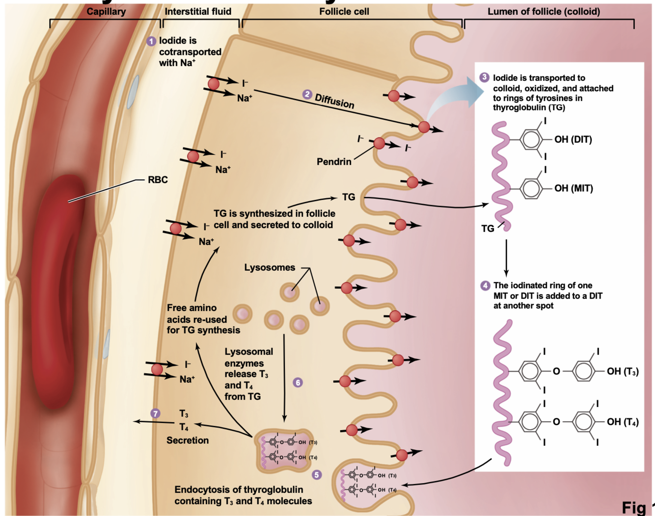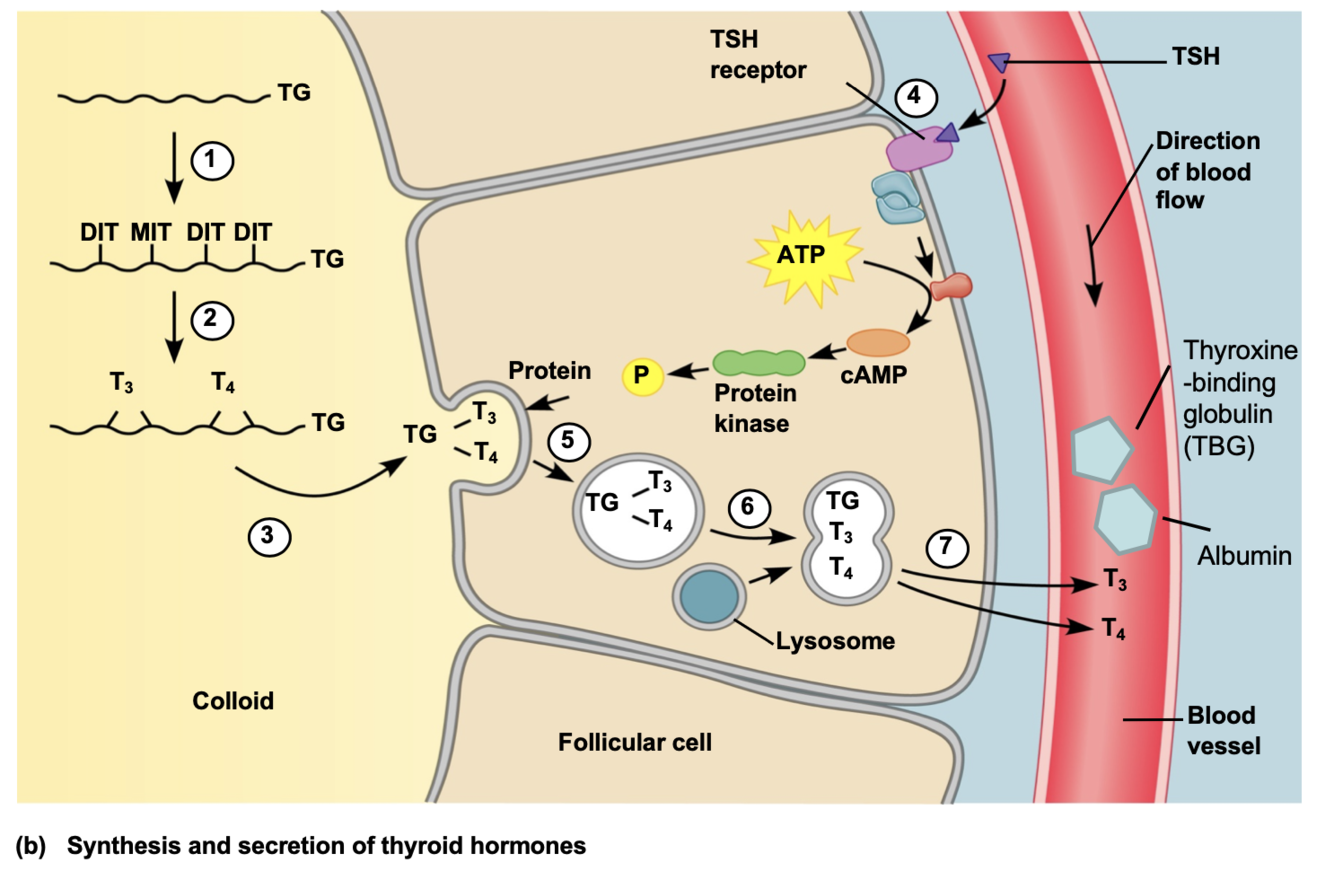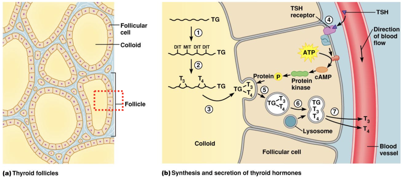 Once TH (T3 and T4) are synthesized and stored in colloid