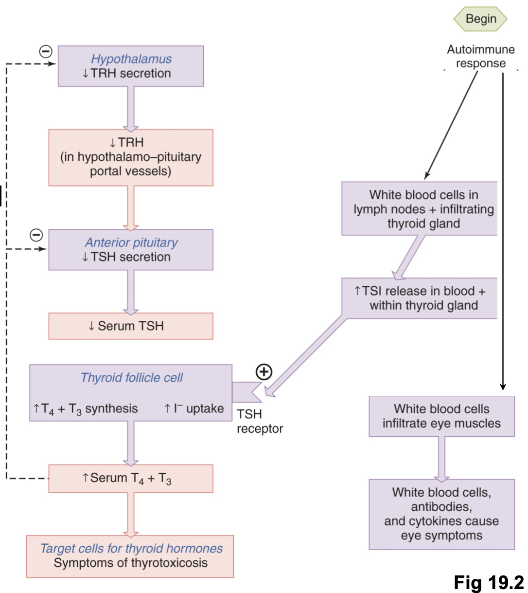 Thyroid hormone excess → forward protrusion of eyes and inflamed throat