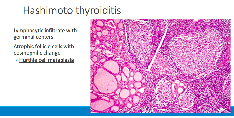 Hurthle cells = atrophic follicle cells w/ eosinophilic change + granular cytoplasm