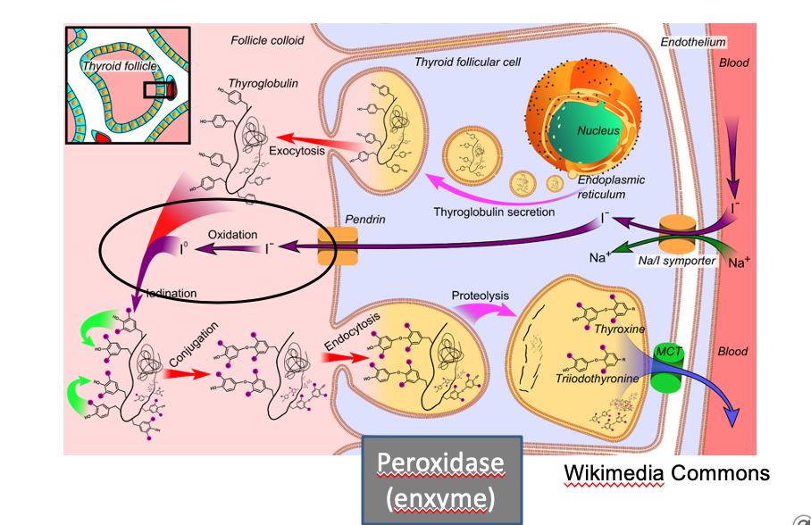 L’iode passe de l’iode négatif à iode neutre à l’aide de l’enzyme peroxydase