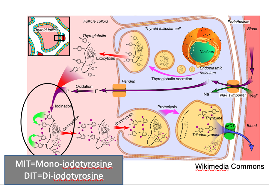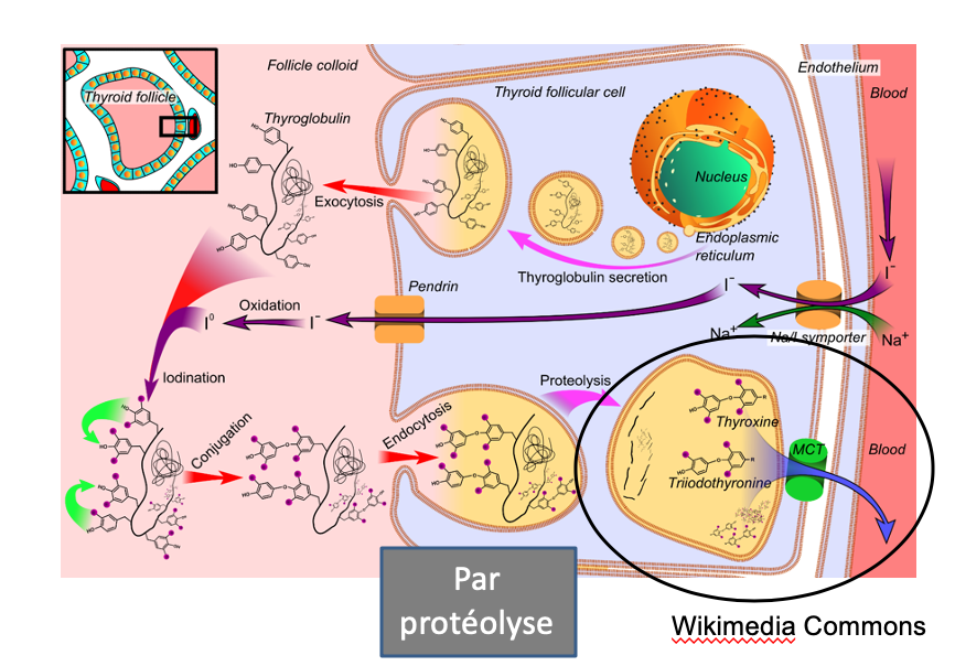 L’iode passe dans le sang et entre dans la cellules folliculaire