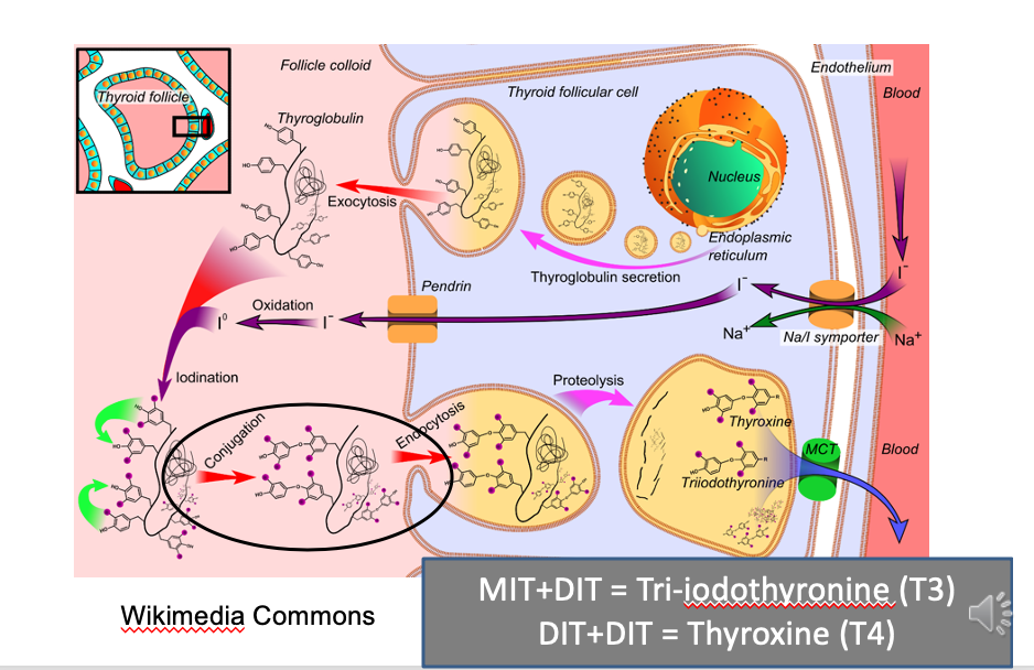 Quelles sont les 6 étapes de la synthèse des hormones thyroïdiennes?