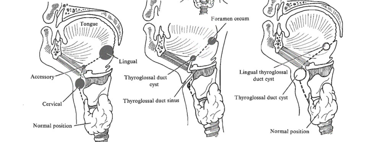 Nommer trois pathologies survenant en raison d’un défaut de migration de la thyroïde ou d’une persistance du canal thyréoglosse?