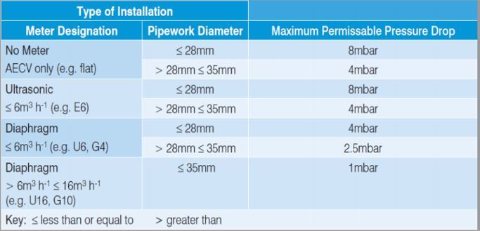 6m3/h or less (U6 or G4 meter) = 2.5mbar