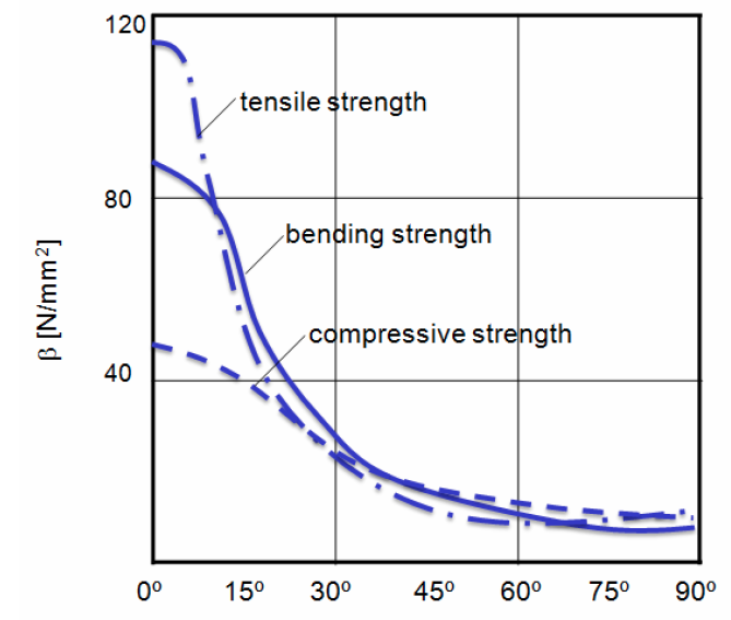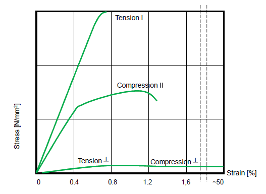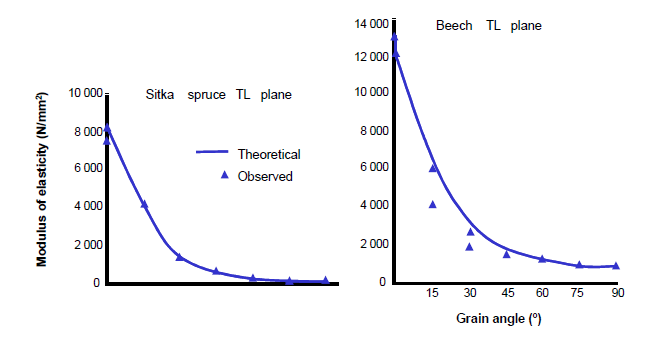 Parallel and perpendicular to the grains at a moisture content (u) of 15%