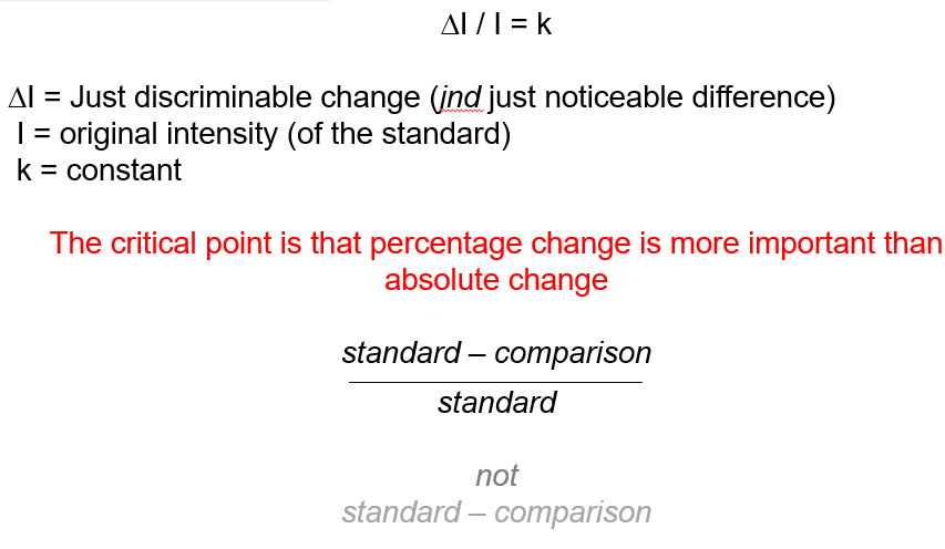 when you change a stimulus is proportional to the initial intensity/ magnitude of the changed stimulus.