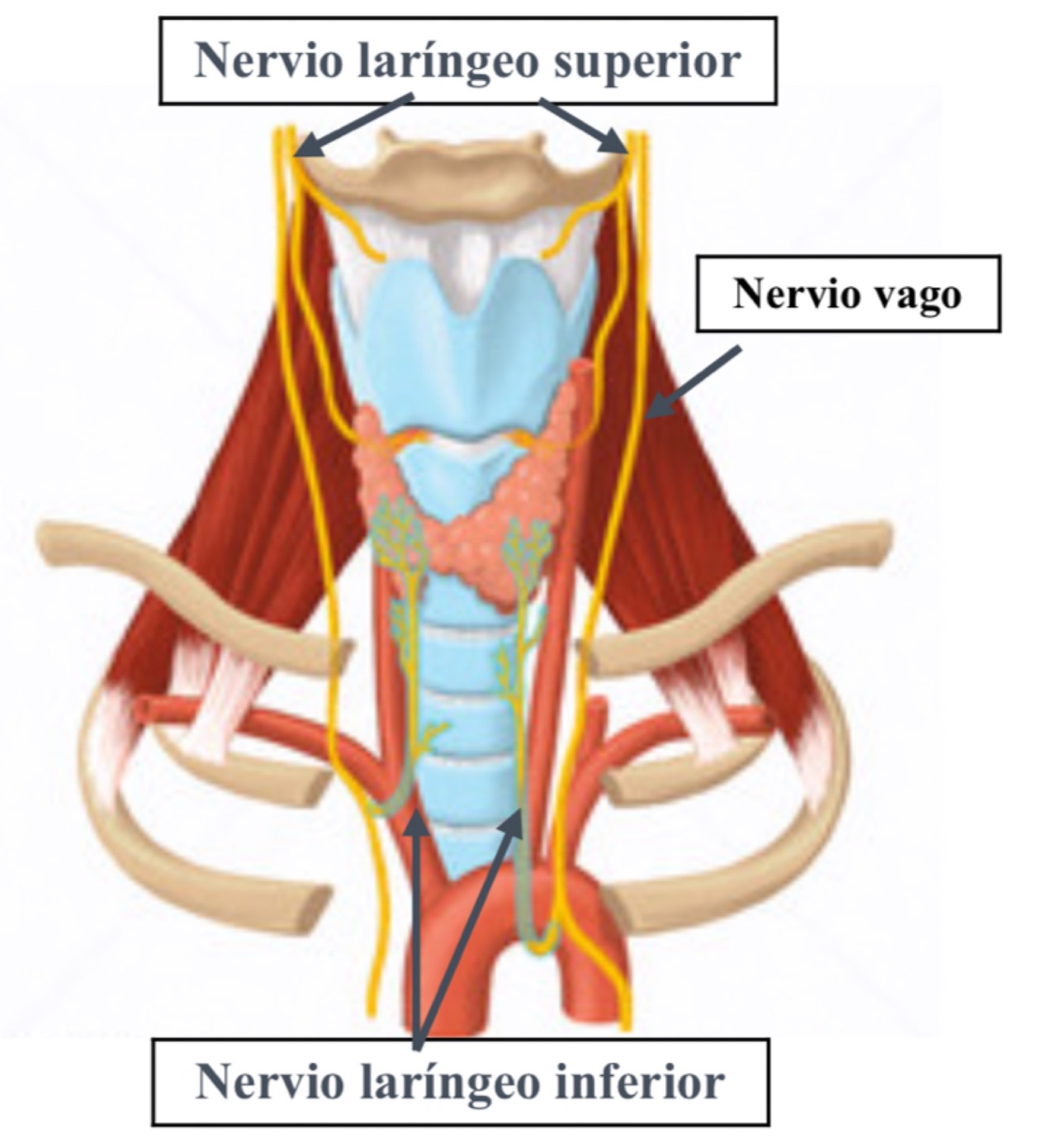Está inervado por la rama del nervio vago (da la función motora y sensible de la laringe, inervado a todos los músculos laríngeos excepto el cricotiroideo):