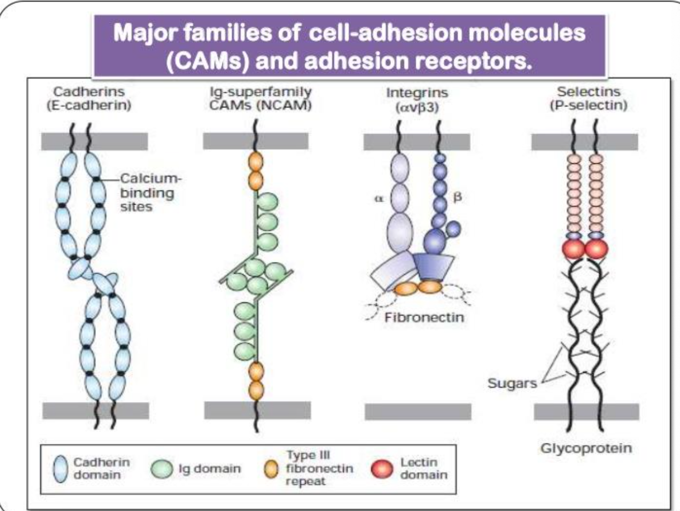 What are the 4 major types of cell adhesion molecules (CAMs)?