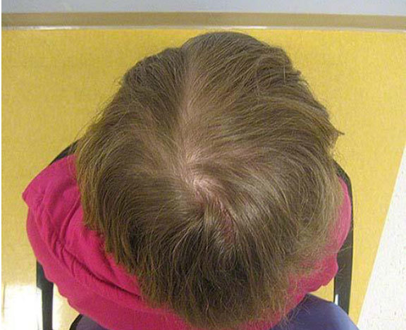 A 3-year-old girl is undergoing tissue expansion of the scalp and forehead for resection of a giant congenital nevus. Which of the following changes is most likely to be observed in the area undergoing expansion?
