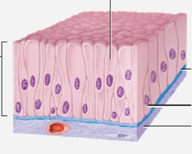 Function: Secretion and absorption, higher level than cuboidal, secreted mucus lines many tracts