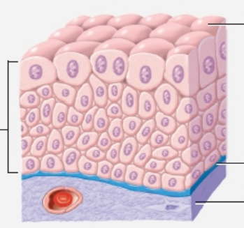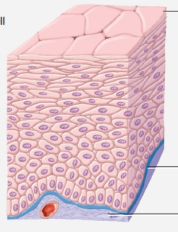 Location: Keratinized forms superficial layer of skin, nonkeratinzed lines wet surfaces (mouth, esophagus, epiglottis, pharynx, vagina, tounge)