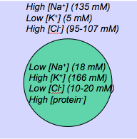What are the relative concentrations of the main ions (intra- and extracellularly)?