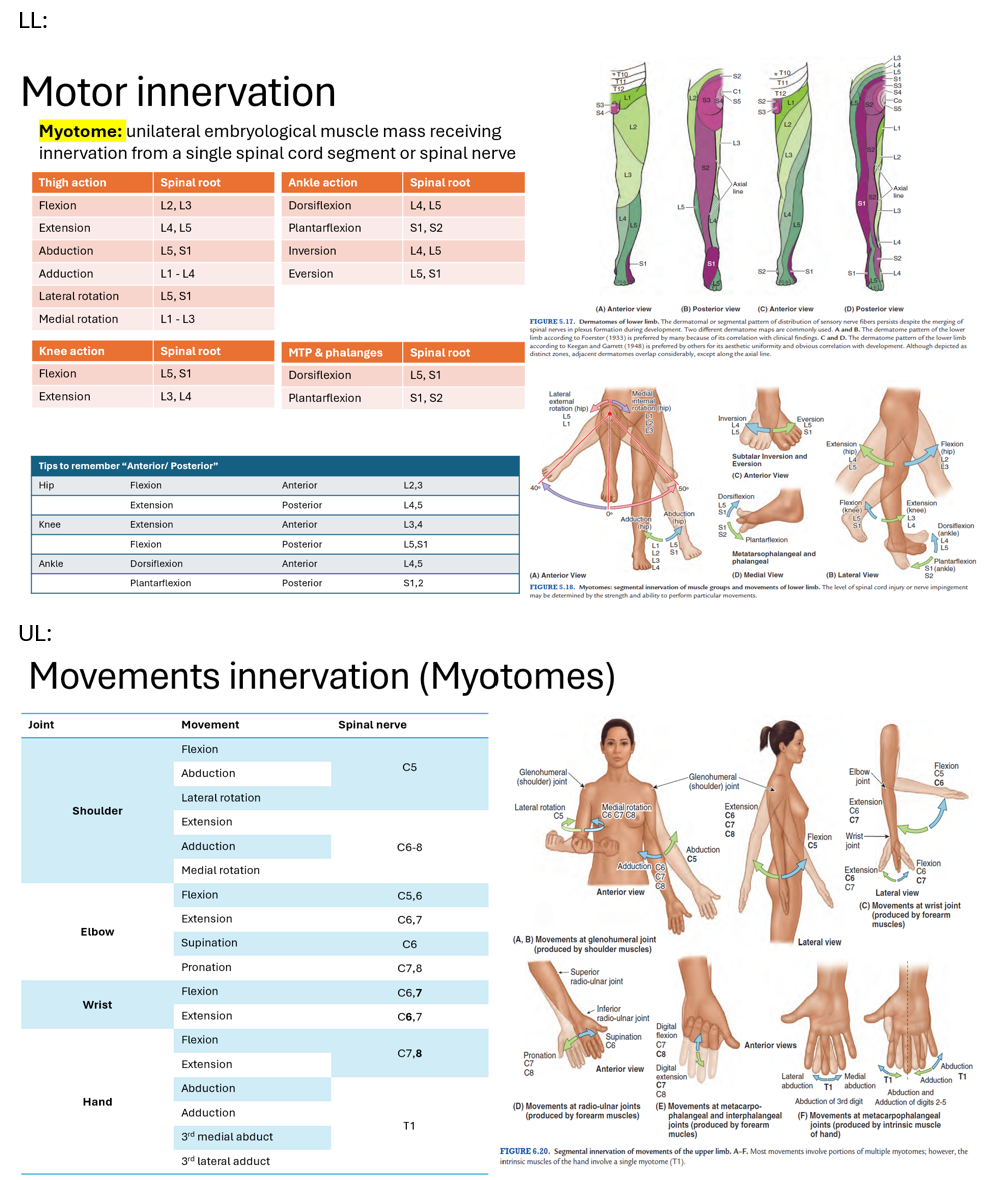 NOTE: these myotomes come from older texts. If you look in the current text, it the diagram of knee felxion and extension is labelled incorrectly. (I.e. knee flexion should be knee extension)