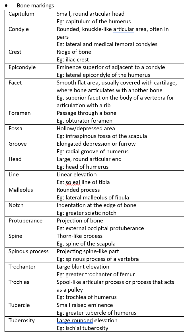 Axial skeleton: consists of the bones of the head (cranium), neck (hyoid bone and cervical vertebrae) and trunk (ribs, sternum, vertebrae and sacrum)
