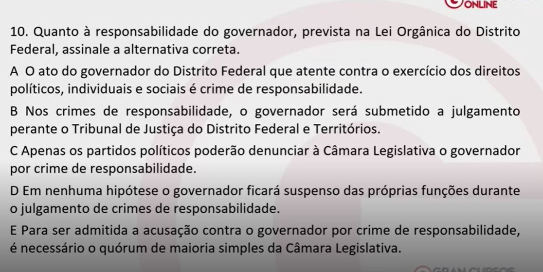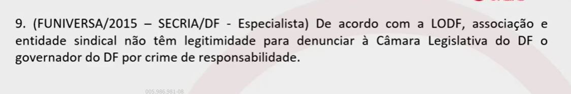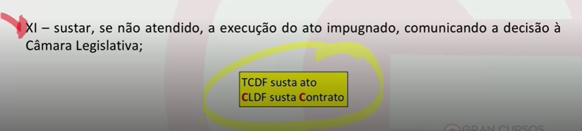 “Entre as competências do TCDF esta a de sustar contratos quando em desacordo das normas.” C ou E?