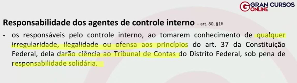 “A responsabilidade dos agentes de controle interno, ao terem conhecimento de irregularidades, é subsidiária.” C ou E?