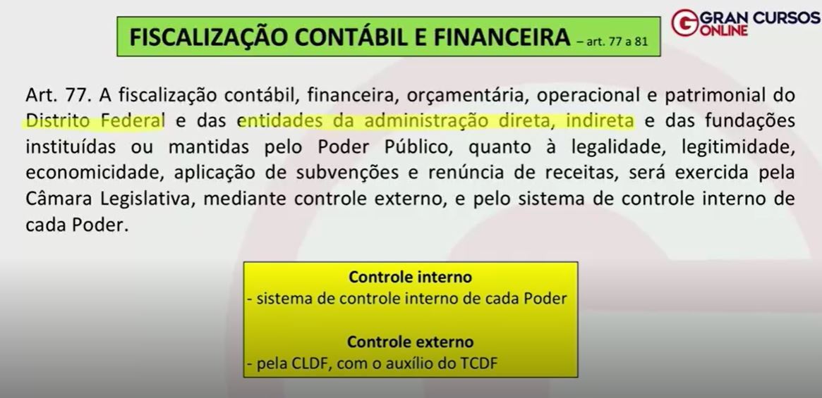 “A fiscalização contábil, financeira e orçamentária do DF e das entidades de administração direta, indireta será feita pela CLDF”.