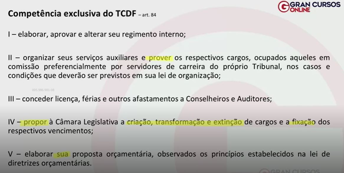 “Compete exclusivamente ao TCDF a criação e extinção dos seus cargos.” C ou E?