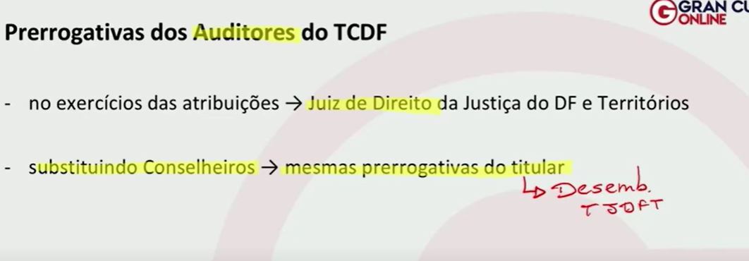 Quais as prerrogativas dos auditores do TCDF?