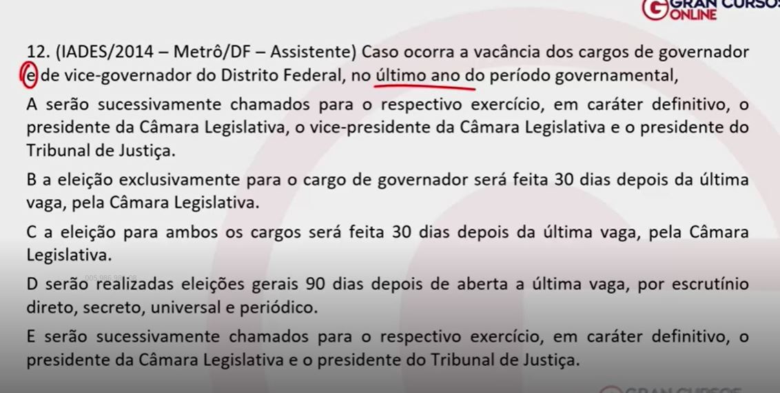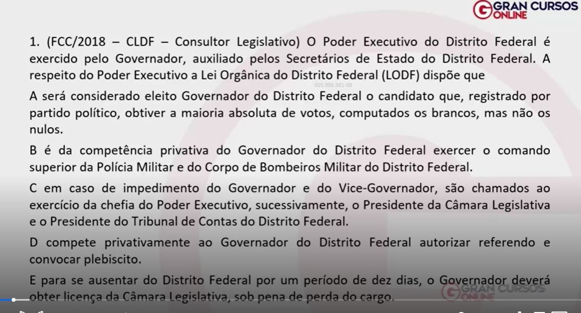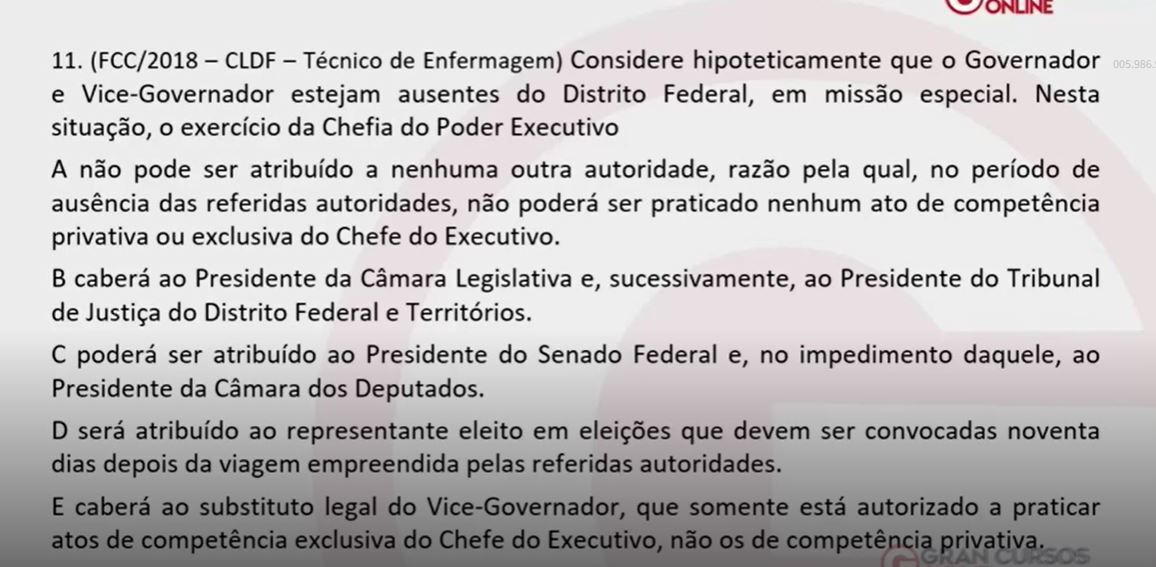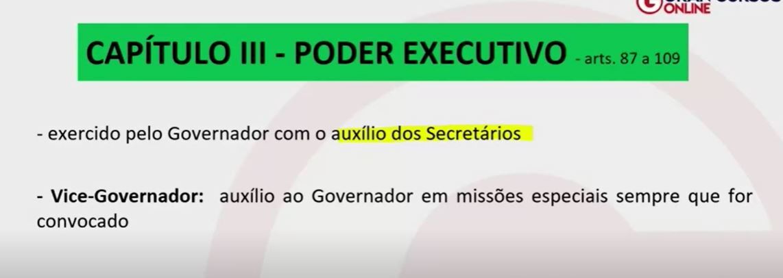 “O Poder Executivo é exercido pelo Governo com o auxílio do Vice-Governador.” C ou E?