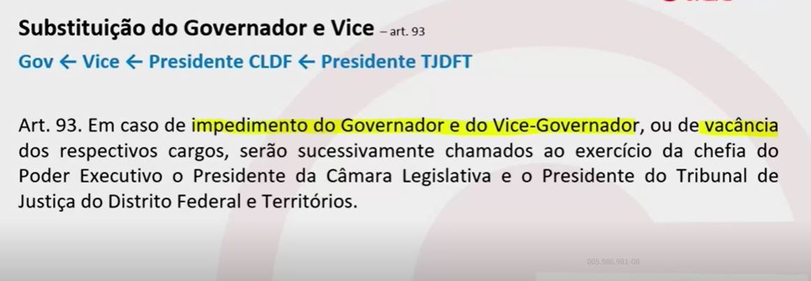 É possível que o Presidente do TJDFT substitua o Governador do DF?