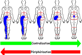 Centralisation : Réduction ou l’abolition des symptômes les plus distaux _en réponse à des tests mécaniques (_mouvements répétés, postures).