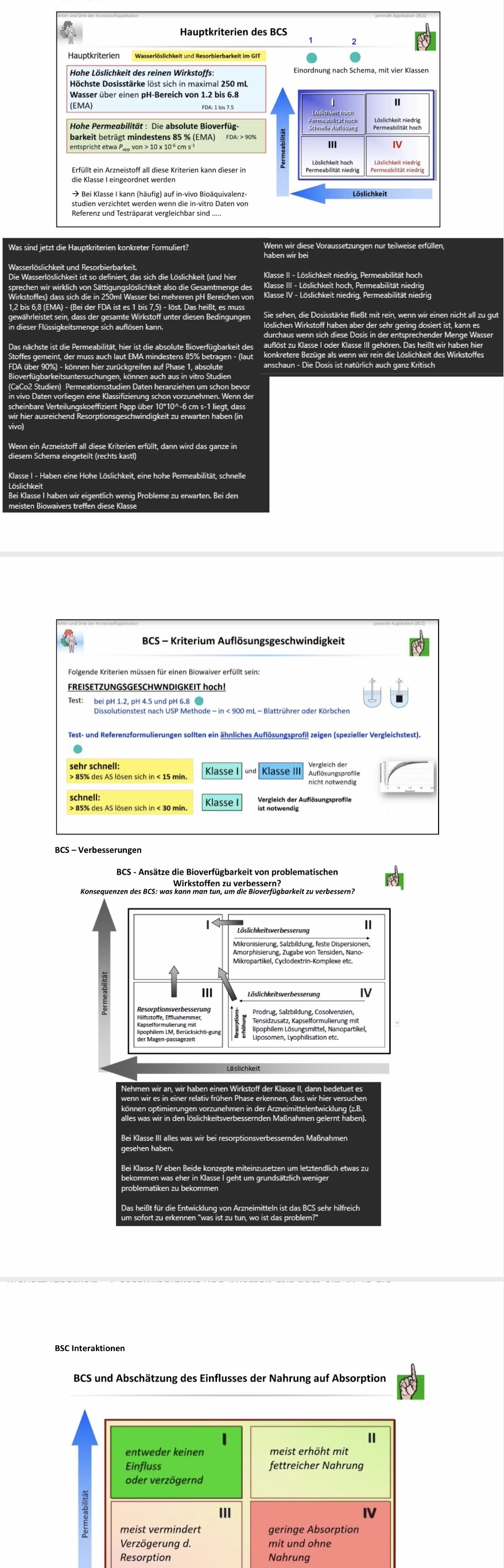 Mit dem Konzept des BCS kann anhand bestimmter physikalisch – chemischer Charakteristika von WS eine Entscheidung darüber getroffen werden, ob gegebenenfalls auf eine Bioäquivalenzstudie verzichtet werden kann oder nicht. Nur gütlig für schnell freisetzende Medikamente, die in fester Form oral verabreicht werden.