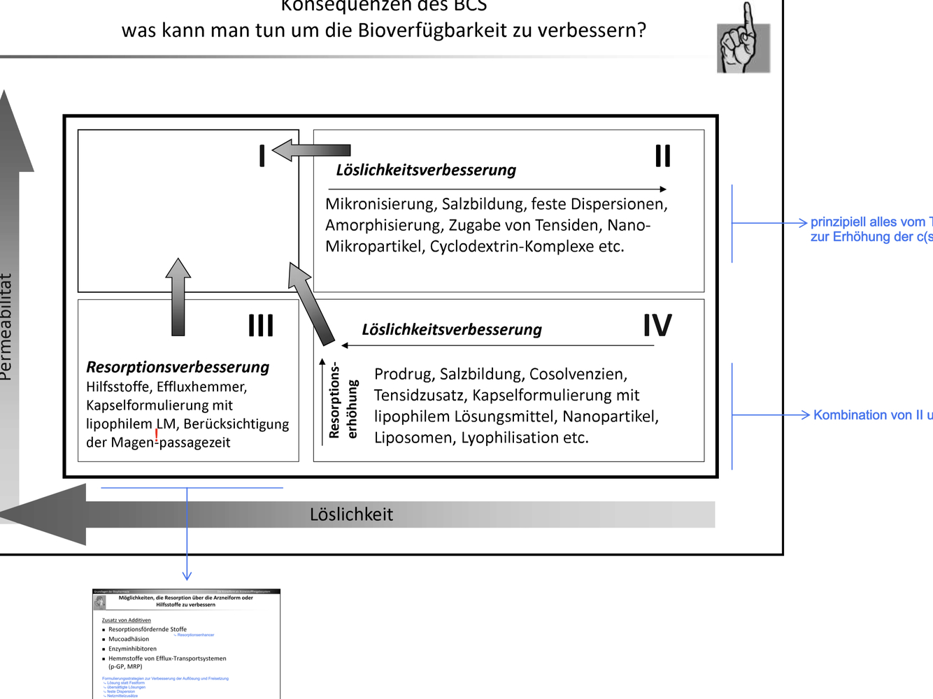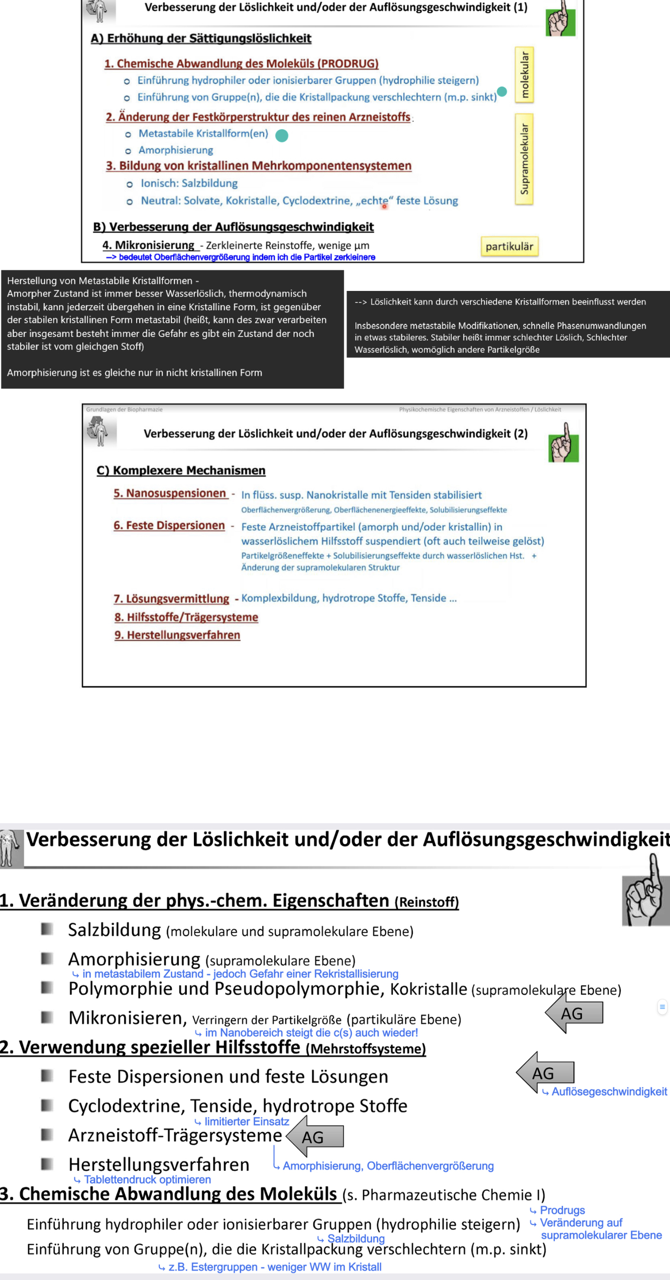 Durch löslichkeits verbessernde Maßnahmen, Mikronisierung, Salzbildung, feste Dispersion, Amorphisieurng, Nano-Mikropartikel