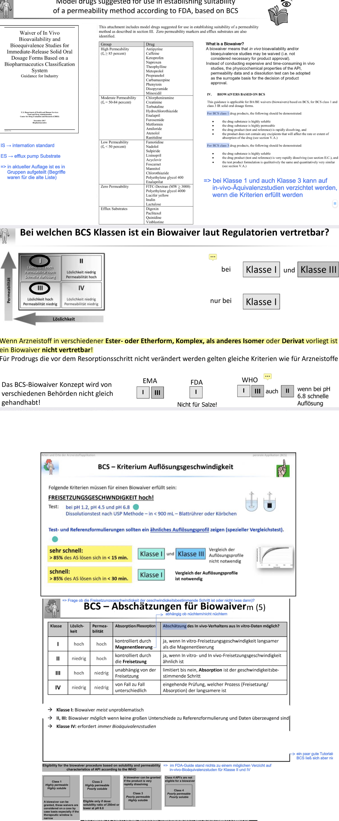Wenn Arzneistoffe von Test- und Referenzpräparat identisch sind (Jetzt geht es um den Wirkstoff selbst). Wenn hier keine Unterschiede bestehen zwischen jenen Wirkstoff am Referenz und Nachahmerpräpparat, sagt die EMA, können wir solche Biowavers auf Klasse I und Klasse III anwenden