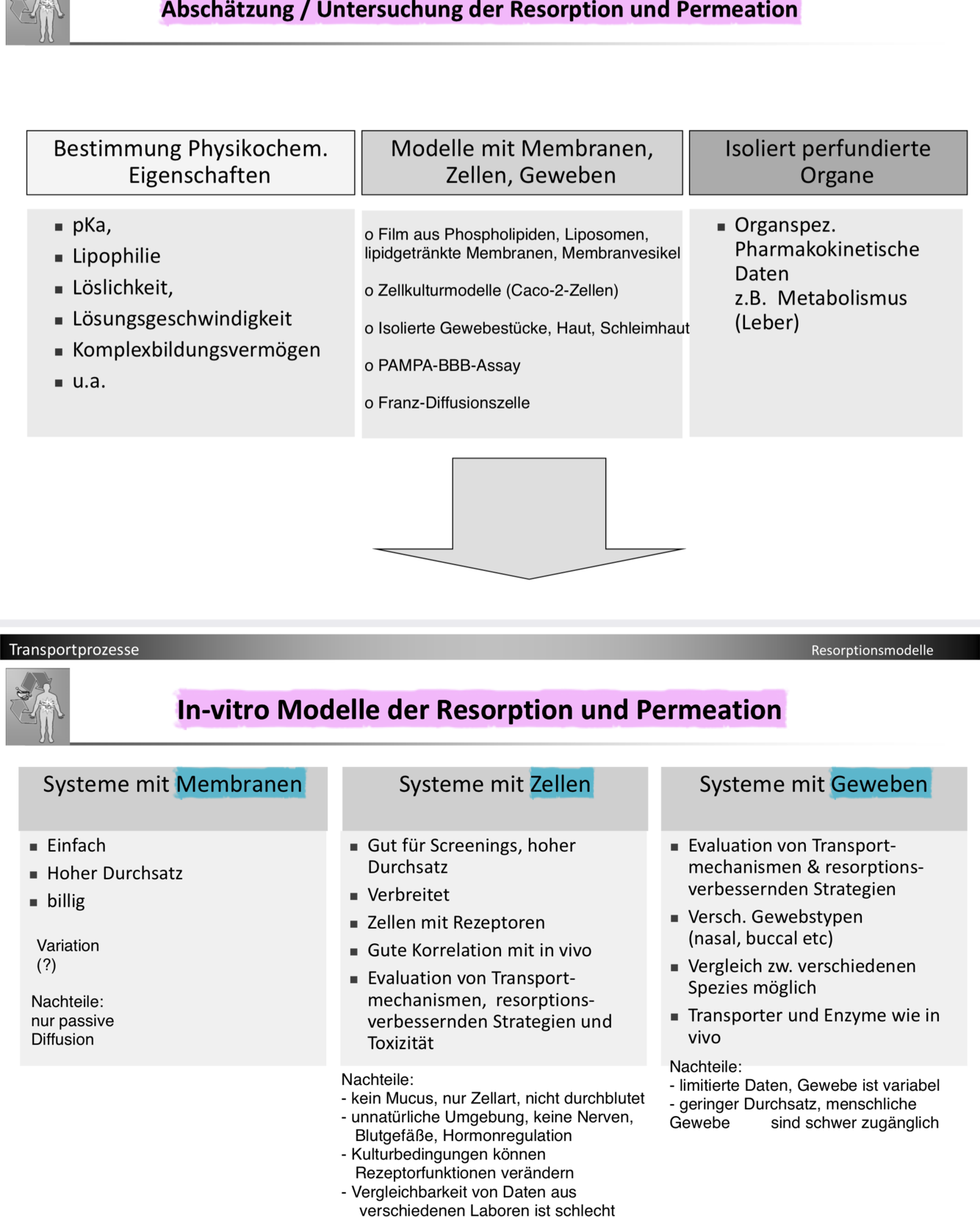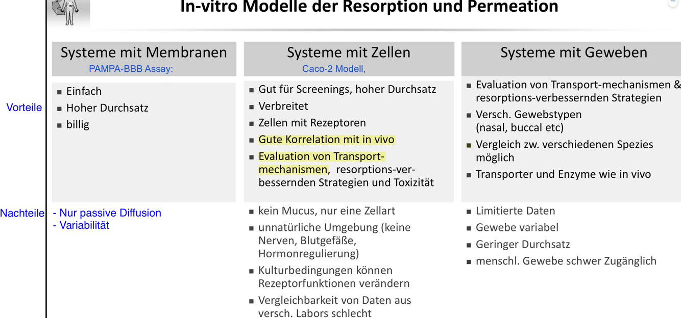 Hier kann man Transportmechanismen, Metabolisierung und resorptionsverbessernde Strategien erörtern.