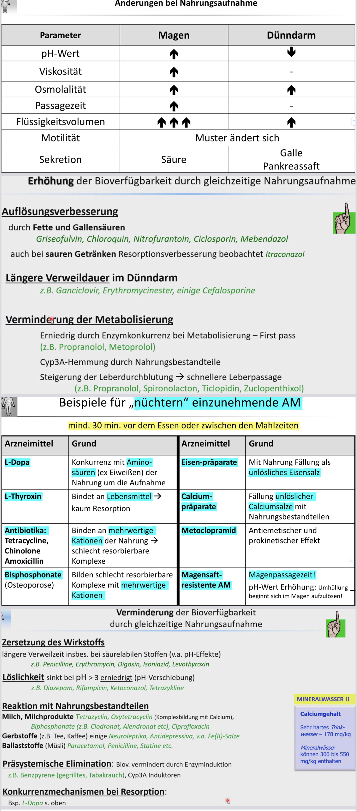 Änderungen GIT mit Nahrung: was verändert sich? welche Medikamente betroffen