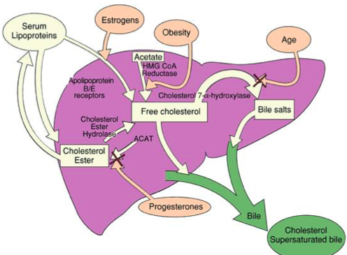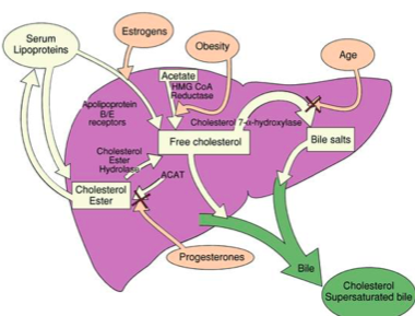 Describe cholesterol metabolism. Hypersecretion? Risk factors for cholesterol stones?