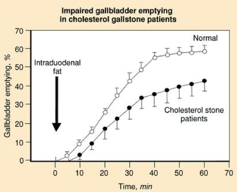 How can gallbladder emptying affect the formation of cholesterol stones? Provide an example.