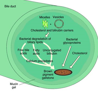 What are the risk factors for brown pigmented stones?