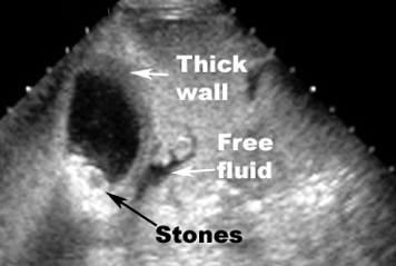 Pt. previously seen for biliary colic comes back w/severe pain that lasts longer, and travels to shoulder. Feeling sick: febrile, tachycardic, hypotensive, high WBC, tachypnic.