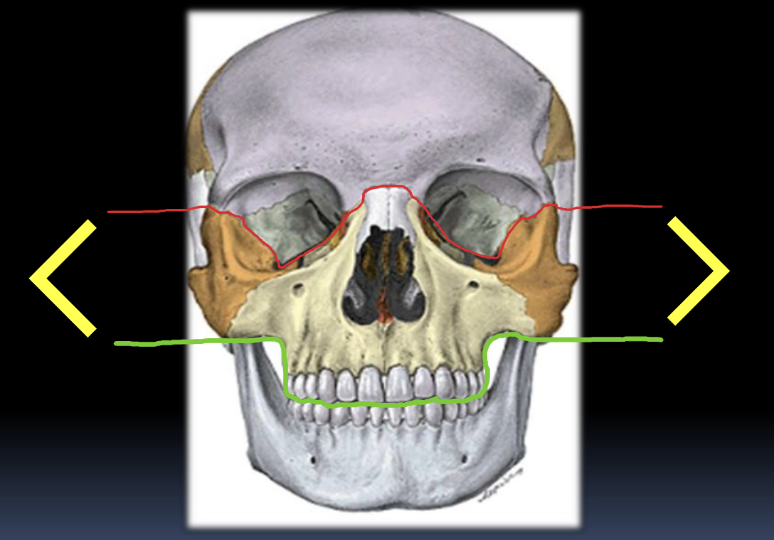 Principalmente el maxilar superior, que incluye casi todos los senos paranasales.