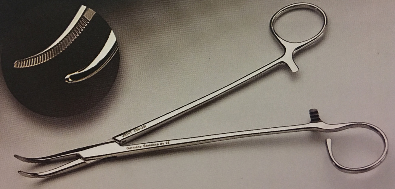 used to clamp small vessels in a deep wound and for holding tonsil sponges