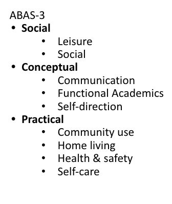 Adaptive measure (VABS, ABAS) - r/o IDD if GAI is low