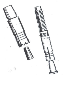 An anchoring device which expands inside a pre-drilled hole when driven downward against it’s tapered plug.