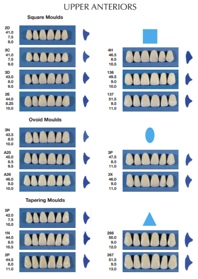 what are the shapes avilable for upper anterior teeth?
