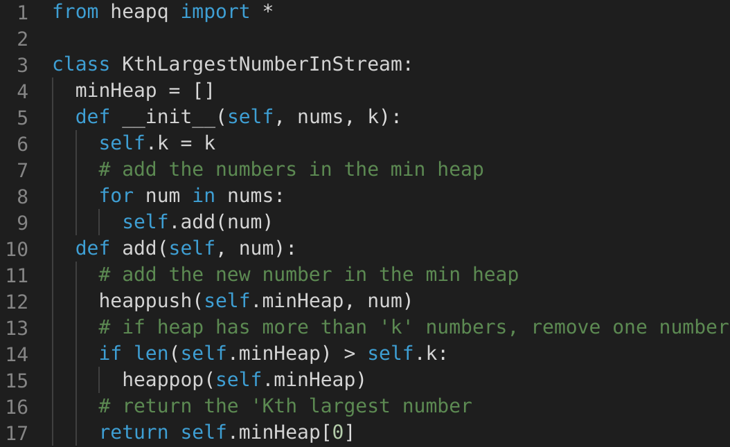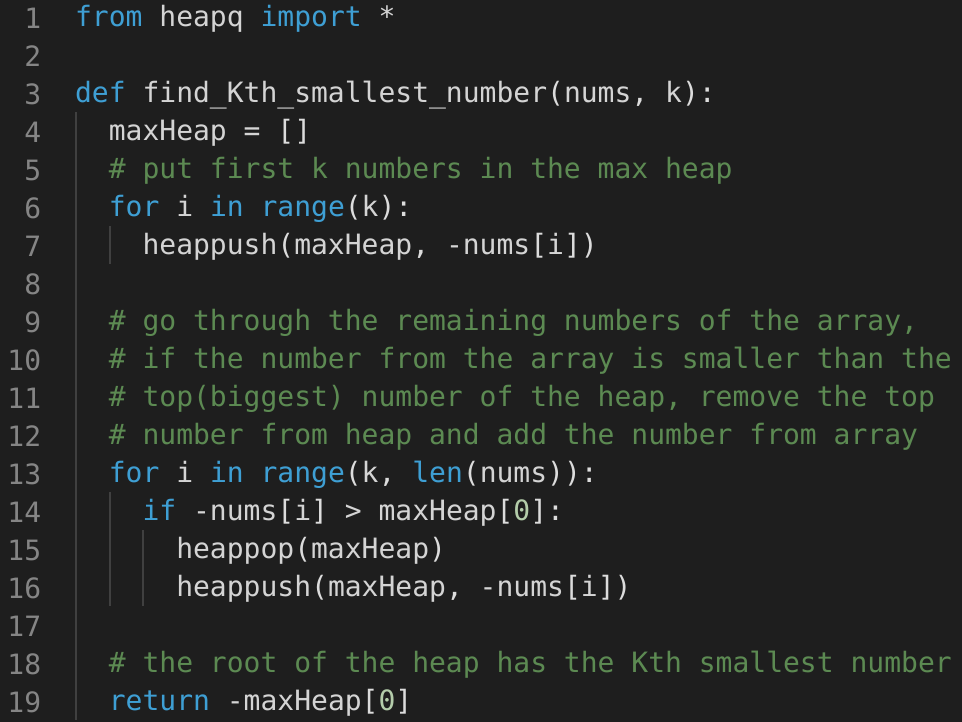 2. In this problem, we need to find only one number (Kth smallest) compared to finding all ‘K’ largest numbers.