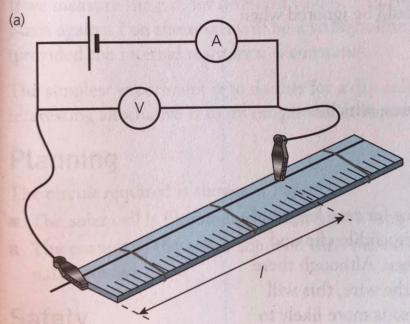 2) Attach a crocodile clip at the zero end of the meter ruler.