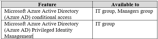 You want the members of two groups named IT and Managers to be able to use the features shown in the following table.