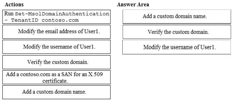You create a user account named User1. User1 is configured to sign in as user1@contoso.onmicrosoft.com.