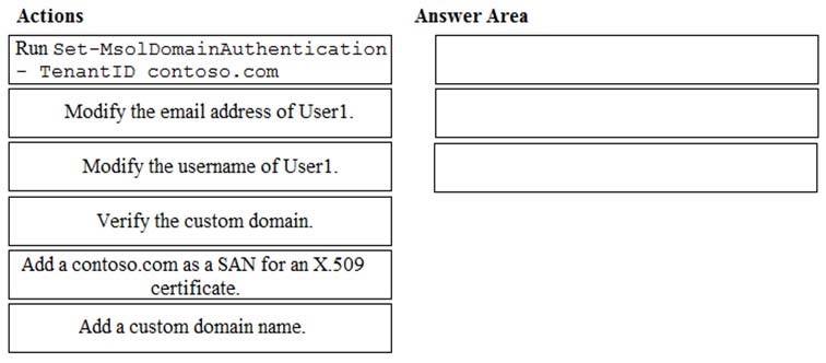 Which three actions should you perform in sequence? To answer, move the appropriate actions from the list of actions to the answer area and arrange them in the correct order.